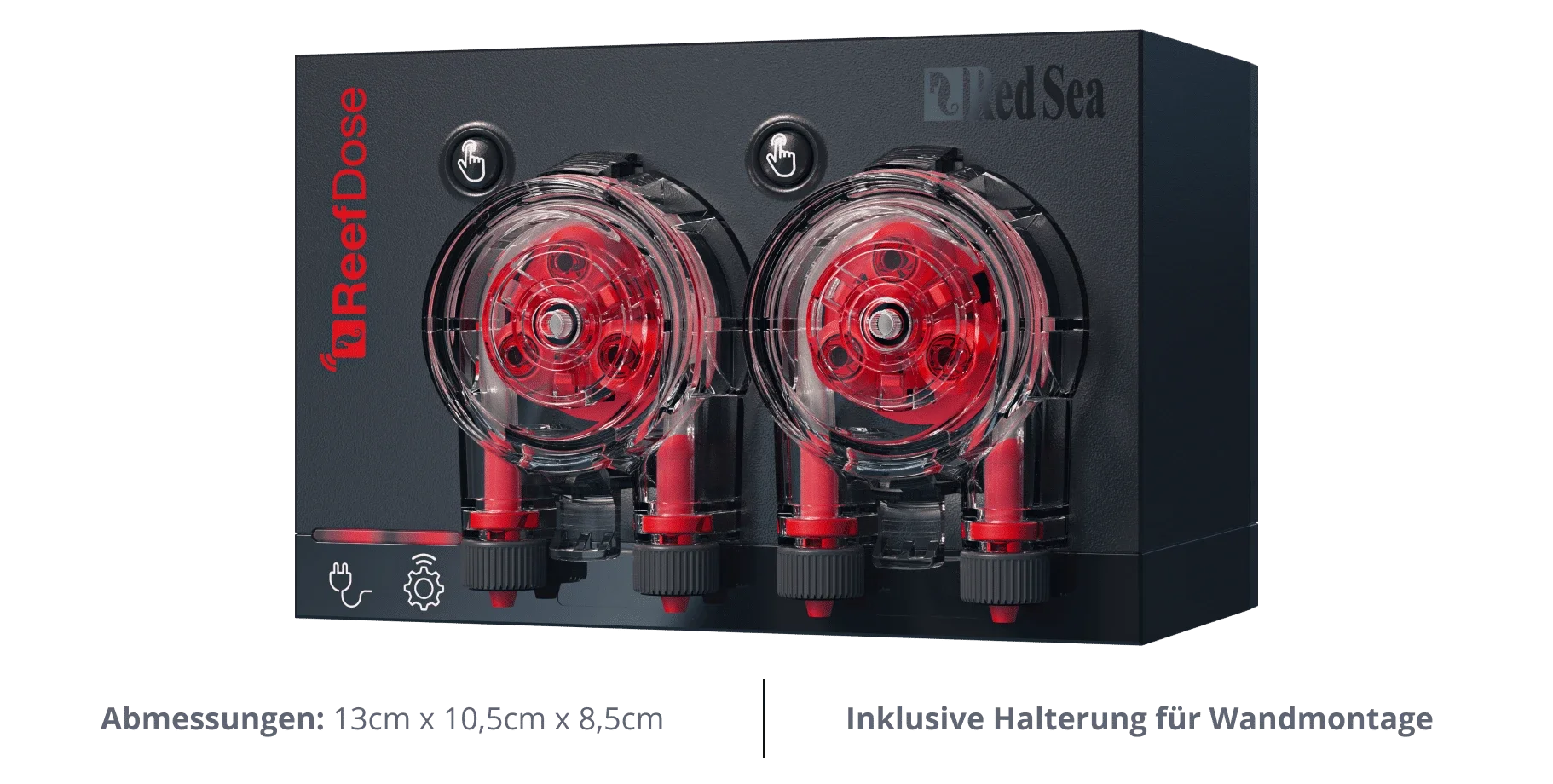 ReefDose verwendet maßgefertigte (zum Patent angemeldete) Dosierköpfe mit Einzeltropfen-Genauigkeit zusammen mit einer modernen Steuerung, die eine ganze Reihe von Funktionen bietet.