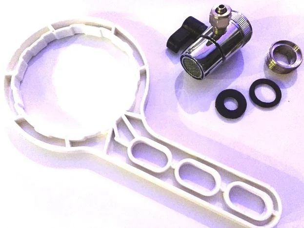 Kostengünstige Komplett-Umkehr-Osmose-Anlage mit Schlauch und hochwerdigen Wasserhahnanschluss am vorhandenem Wasserhan montierbar.